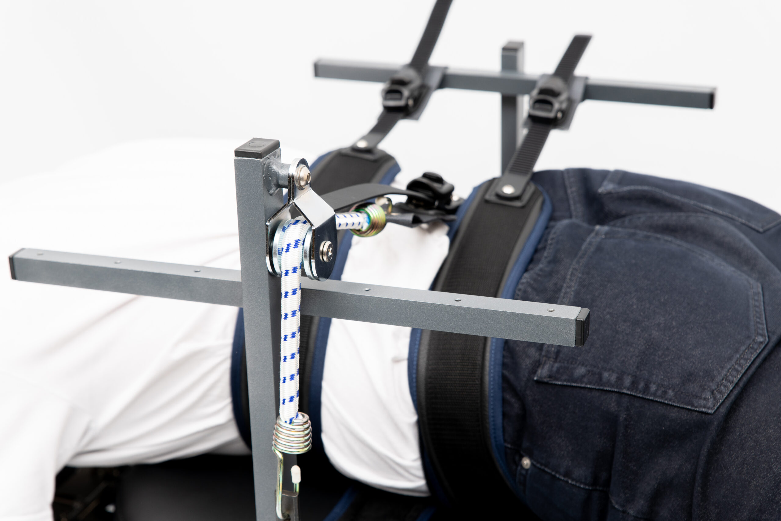 Soulage les compressions vertébrales (hernies, sciatiques...) via une décompression douce et parfaitement contrôlée.
