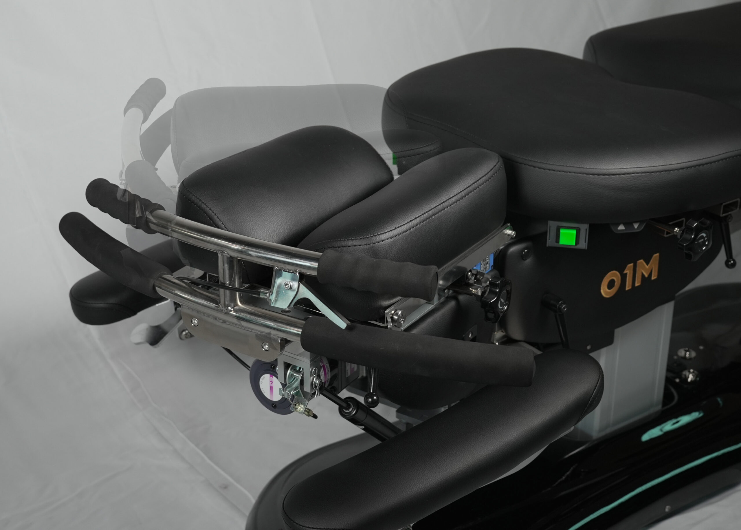 Les drops automatiques sont une innovation majeure, uniquement disponible sur les tables Raphaël de la marque 01M. La spécificité réside dans le fait que lorsque vous ajustez votre patient avec un drop (cervical, thoracique, lombaire ou pelvien), la table remonte automatiquement en position « relevée » sans avoir à appuyer de nouveau sur une pédale ou actionner le drop manuellement. Vous pouvez alors de nouveau ajuster en drop sans action de votre part. Un vrai gain de temps et d’énergie.